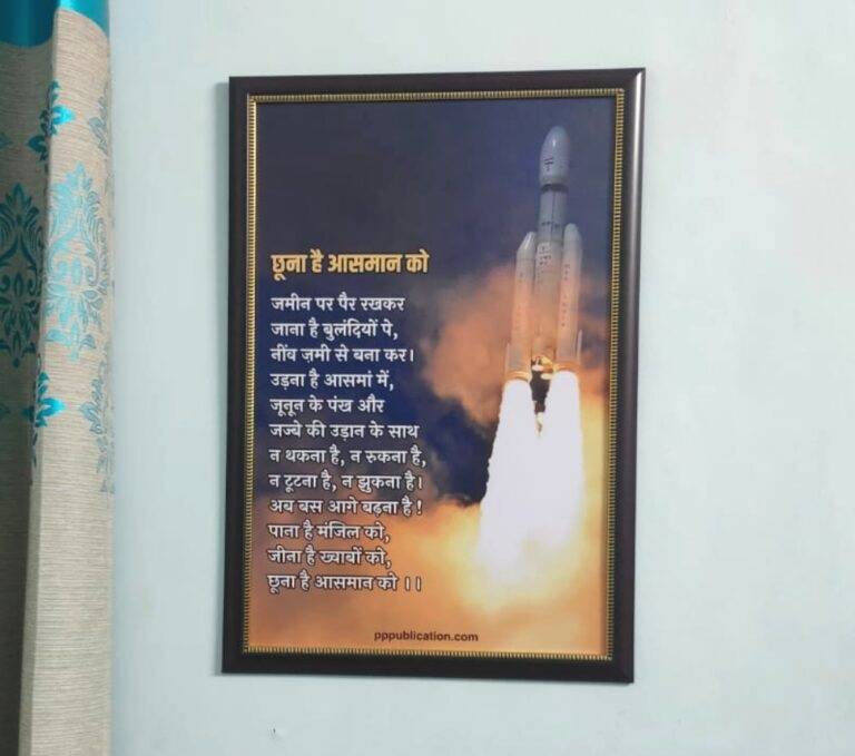Chhoo lo Aasmaan (Literary Lines), Ideal motivational gift for your loved ones. Inspiring quotes and art will liven your space. A motivational photo frame can be a great way to uplift or inspire yourself and others. High quality, sleek and elegant design gives it a sophisticated and timeless look. A great Wall decor for multiple uses like Classrooms, Hospitals, etc public places. Perfectly fit for office and home spaces. There is an inspiring line digitally printed on the sun board. These lines serve as a constant reminder of your goals, dreams, or personal mantra.