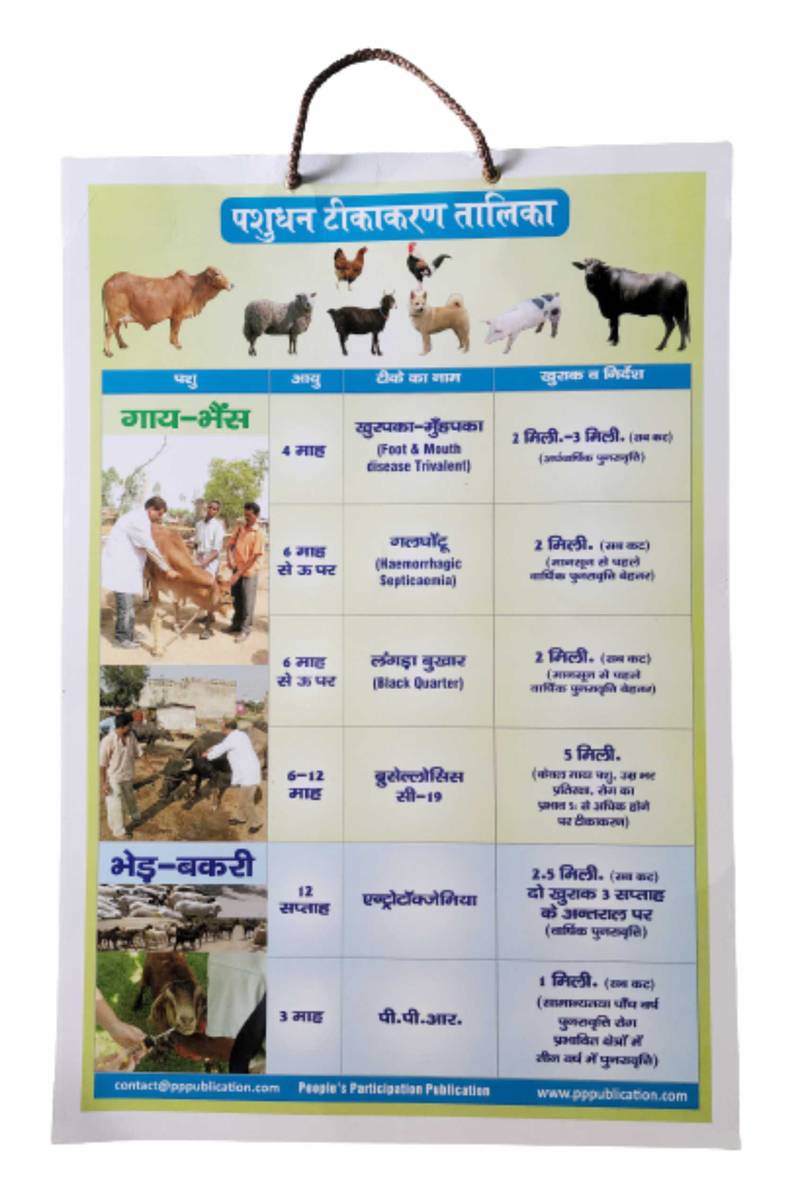 Pashu Tikakaran Dangler Chart are valuable tools for presenting information, data and concepts in visually appealing and easily understandable format. They are very useful in teaching, training, educational, demonstration Purposes. You can either read it or display it on wall. They are beneficial to both teachers and students aiding in learning process and enhancing comprehension. Dangler Chart is both side printed. The font is elegant and legible making it easy to read.