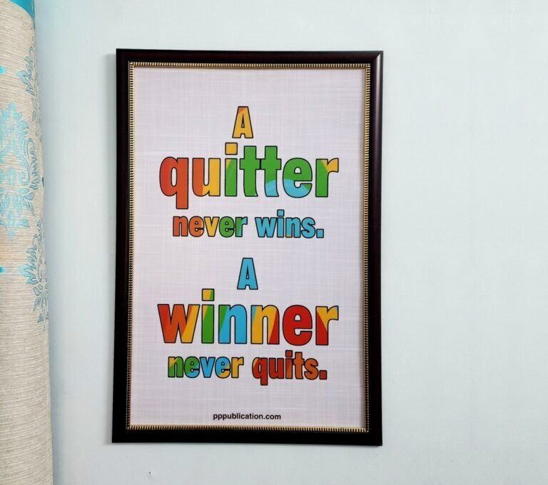 Quitter Motivational Workplace, Ideal motivational gift for your loved ones. Inspiring quotes and art will liven your space. A motivational photo frame can be a great way to uplift or inspire yourself and others. High quality, sleek and elegant design gives it a sophisticated and timeless look. A great Wall decor for multiple uses like Classrooms, Hospitals, etc public places. Perfectly fit for office and home spaces. There is an inspiring line digitally printed on the sun board. These lines serve as a constant reminder of your goals, dreams, or personal mantra.